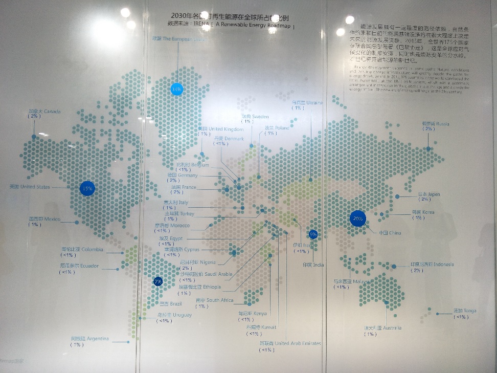 Due to the pollution from the traditional form of energy, we may face a crisis of the lack of energy in the future. Hence, in 2015, Chinaalong with 174 countries had concluded the Paris Agreement at the United Nations (UN) Headquarters, an agreement in response to the global climate change and a divide for energy reform, and by 2030 the world would have the amount of renewable energy as shown in the map above.