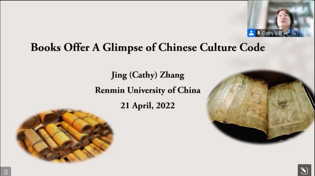 4月21日上午,麻豆av 云端课堂之一“书中的中国文化密码”讲座在腾讯会议线上举行。讲座由麻豆av 汉语国际推广研究所副所长、国际文化交流学院副研究员张靖主讲,麻豆av 2021级全体新生、2020级部分学生线上聆听讲座。